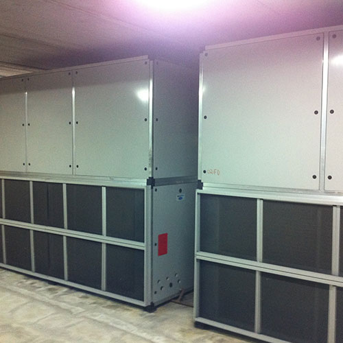 O sistema possui unidade interna (evaporador e ventilador) e unidade externa (condensador) instalada em uma casa de máquinas. A unidade interna é acoplada a uma rede de dutos de distribuição de ar, indicado para ambientes de médio e grande porte, como bancos, teatros, supermercados, cinemas e demais espaços com grande concentração de pessoas.